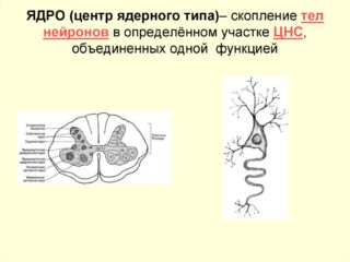 Ядра бывают с четкими границами или переходить в близлежащие. Нервные клетки в их составе могут располагаться компактно или дисперсно.