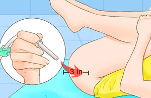 - Смазать наконечник вазелином или детским кремом, ввести на 2-3 см у новорожденных или на 5-7 см у старших детей.