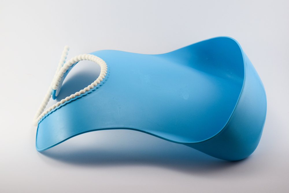 Слюнявчик из силикона или мягкого пластика. Этот слюнявчик потребуется, когда ребенок начинает есть самостоятельно. Он имеет внизу изогнутый желобок, что не позволит жидкой пище протечь на ноги и живот ребенка. Выбирая такой слюнявчик, смотрите, чтобы он имел мягкую горловину, был удобным и легким, не имел едкого запаха. Такой слюнявчик после еды достаточно ополоснуть под струей воды, он не требует сушки.