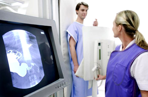 - Пациент помещается в исходное положение перед рентгеновским аппаратом и стоит неподвижно несколько минут.