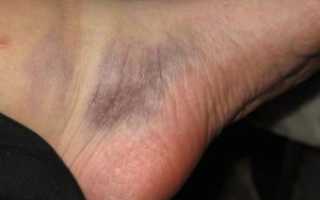 Внешний отек или синяк может проявиться спустя некоторое время после травмы, голень может посинеть и распухнуть из-за внутреннего разрыва связок и сосудов. Все перечисленное в отдельности или в совокупности причин указывает на необходимость обращения к травматологу.
