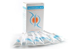 - Норгалакс. Производится по 10 мл в тубе, в упаковке их 6 штук. Применяется только у лиц старше 15 лет. Разжижает каловую пробку, усиливает перистальтику кишечника, облегчает продвижение кала по нему. Эффект наступает максимум через 20 минут. В день возможно применение только 1 дозы.